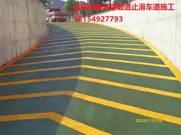 特有的耐磨、耐壓、耐沖擊、耐侯性,能適應室外惡劣的氣候狀況,滿足高流量的使用要求,有效延長道路、坡道的使用壽命。    車道防滑材料顏色多樣,搭配合理、美觀,能滿足人們審美要求。   防滑性能好,車輛行駛在上面平穩舒適、震動感小、人車安全。