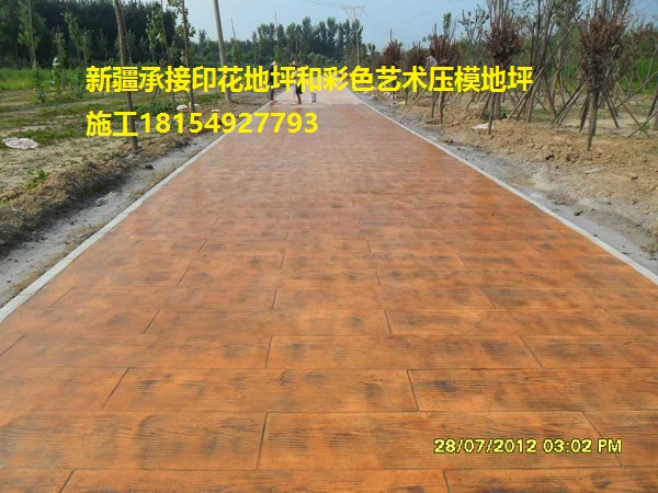 壓花地坪地坪施工工藝為墊層和面層同步施工的施工過程,要以我公司的施工速度為準,要以適合我們施工作業的天氣、時間為準。因為此項工藝需要工人一塊接一塊的連續壓印,所以我們可能受制現場條件、作業面情況等因素;對墊層施工方的施工時間,我們要為每天開始于太陽升起,結束于太陽下落前1.5h;在狹窄的作業面內,不能鋪設墊層的速度過快,因為我們無法在混凝土初凝前完成全部的壓印。